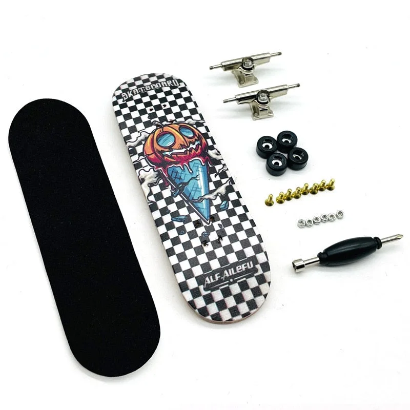 Le Finger Skate Citrouille se distingue par son design original qui apporte une touche de fun à chaque session de fingerboarding. Sa fabrication en bois de qualité supérieure garantit non seulement sa durabilité, mais également une excellente prise en main. Les petits skateurs apprécieront la sensation authentique que procure ce mini skate. De plus, il est compatible avec tous les mini skateparks, permettant ainsi aux utilisateurs de s’entraîner et de s’amuser à tout moment. Que ce soit pour une session entre amis ou pour impressionner lors d’un concours, ce finger skate est l’outil parfait pour développer ses compétences et réaliser des tricks spectaculaires.